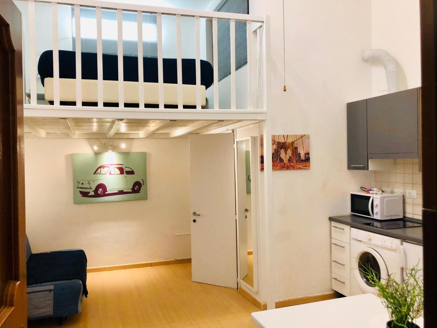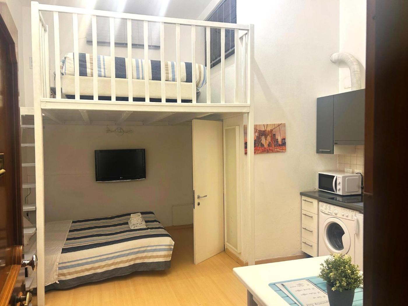 Duplex Studio. The studio includes a private bathroom fitted with a shower, a bidet and a hairdryer. Guests can make meals in the kitchen that has a stovetop, a refrigerator, kitchenware and a microwave. This studio is air-conditioned and has a seating area with a flat-screen TV, a washing machine, a private entrance, a tea and coffee maker, as well as a dining area. The unit has 2 beds.