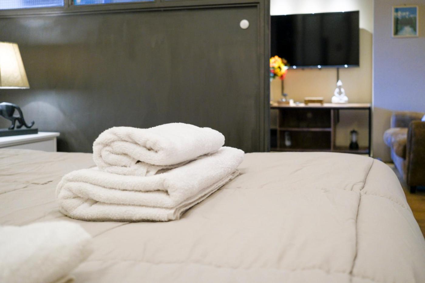 Two-Bedroom Apartment. Featuring a private entrance, this air-conditioned apartment is comprised of 1 living room, 2 separate bedrooms and 2 bathrooms with a shower and a bidet. The well-fitted kitchen features a stovetop, a refrigerator, a dishwasher and kitchenware. The spacious apartment offers a washing machine, a coffee machine, a seating area, a flat-screen TV with streaming services, as well as city views. The unit offers 3 beds.