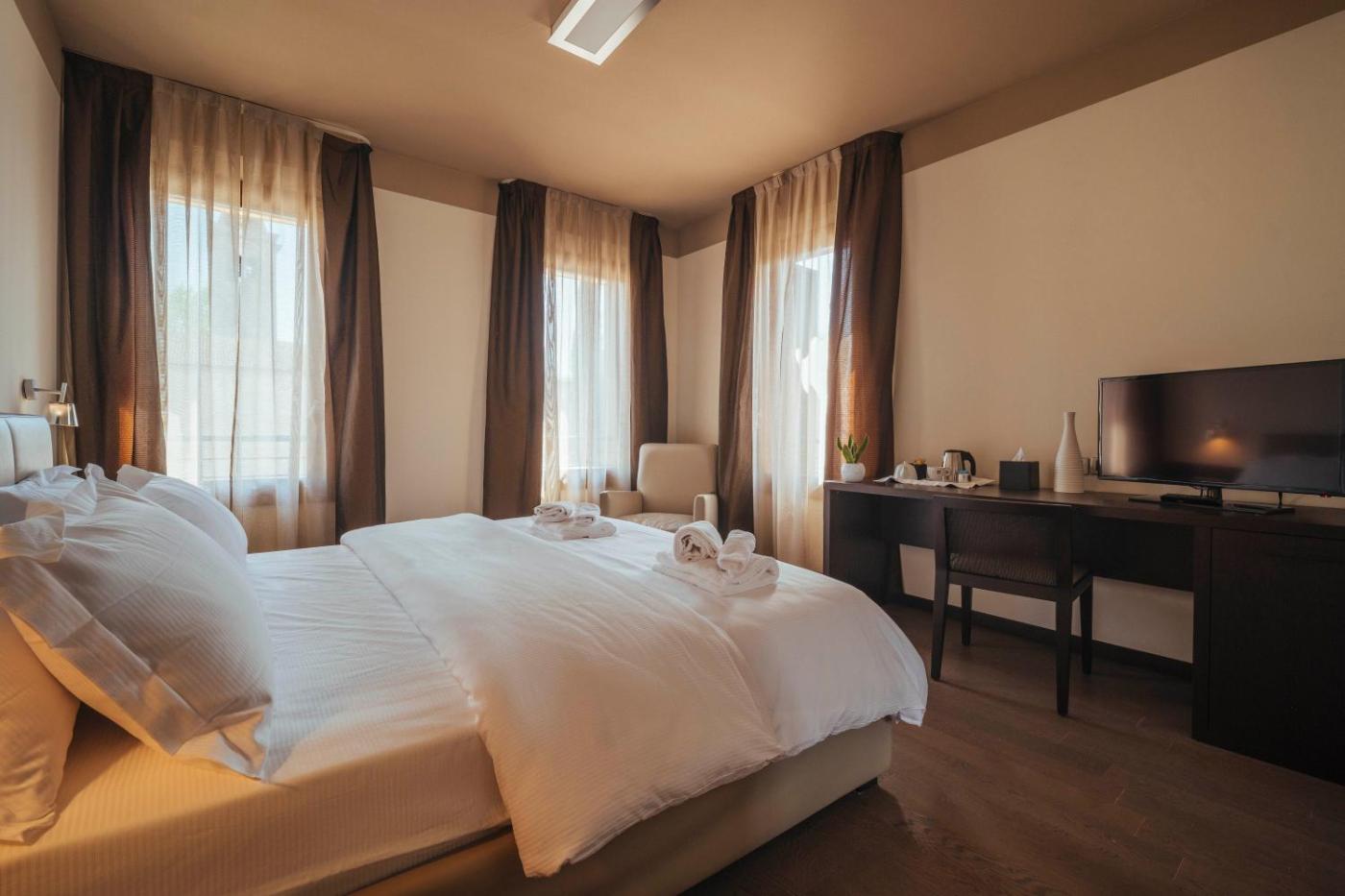 Junior Suite. This suites standout feature is the hot tub. The air-conditioned suite features 1 bedroom and 1 bathroom with a bath and a bidet. The suite offers soundproof walls, a wardrobe, parquet floors, a flat-screen TV, as well as city views. The unit offers 1 bed. ;