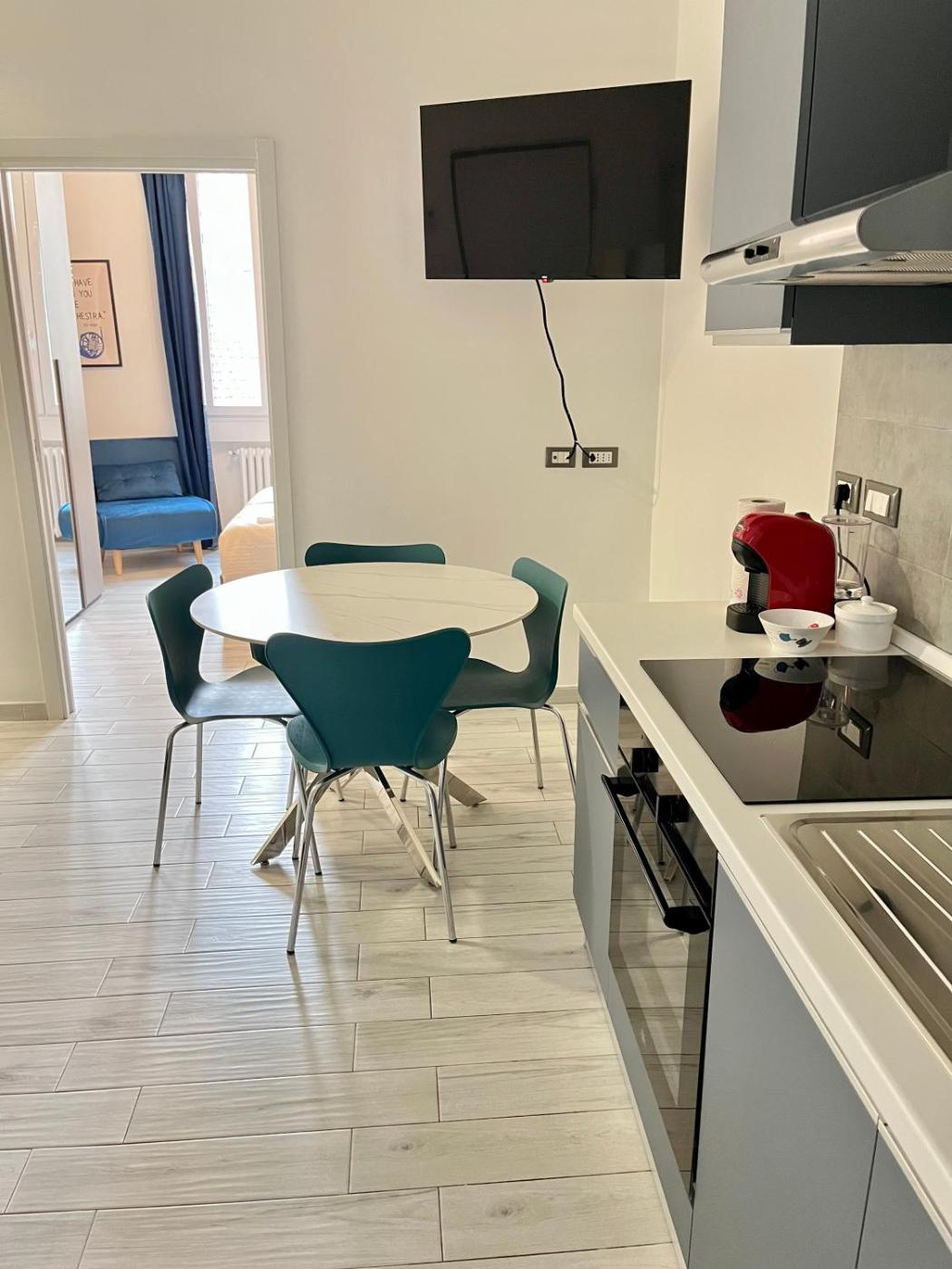 One-Bedroom Apartment. Guests can make meals in the kitchen that features a stovetop, a refrigerator, kitchenware and an oven. This apartment is air-conditioned and has a seating area with a flat-screen TV, a washing machine, a coffee machine, a dining area, as well as a wardrobe. The unit has 2 beds.
