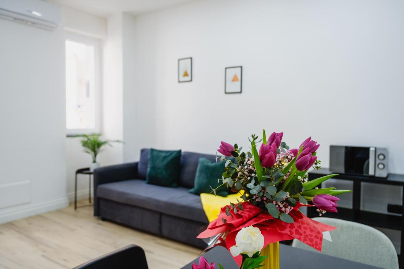 Studio. The studio has a private bathroom, air conditioning, a coffee machine, as well as a seating area with a flat-screen TV. In the kitchenette, guests will find a stovetop, a refrigerator, kitchenware and an oven. The studio features a dining area, a wardrobe, a sofa, a tiled floor, as well as a TV. The unit has 1 bed.