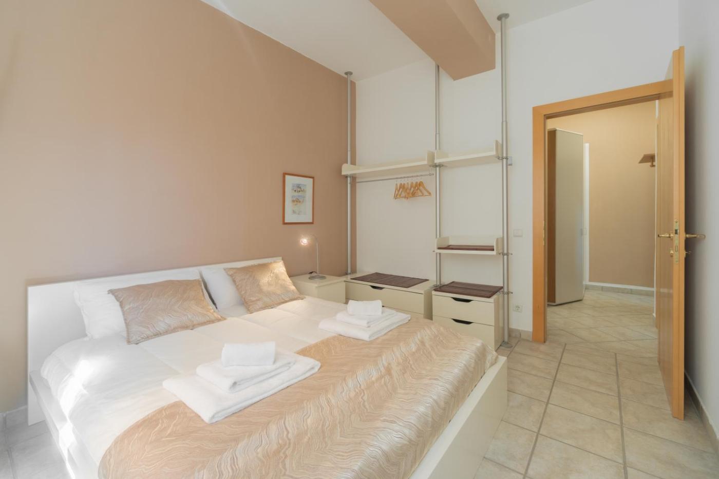 Two-Bedroom Apartment. Boasting a private entrance, this spacious apartment also comes with 2 bedrooms, a seating area and 1 bathroom with a shower and a bidet. Meals can be prepared in the kitchen, which features a stovetop, a refrigerator, a dishwasher and an oven. The air-conditioned apartment features a flat-screen TV with satellite channels, soundproof walls, a tea and coffee maker, a dining area as well as garden views. The unit has 3 beds.