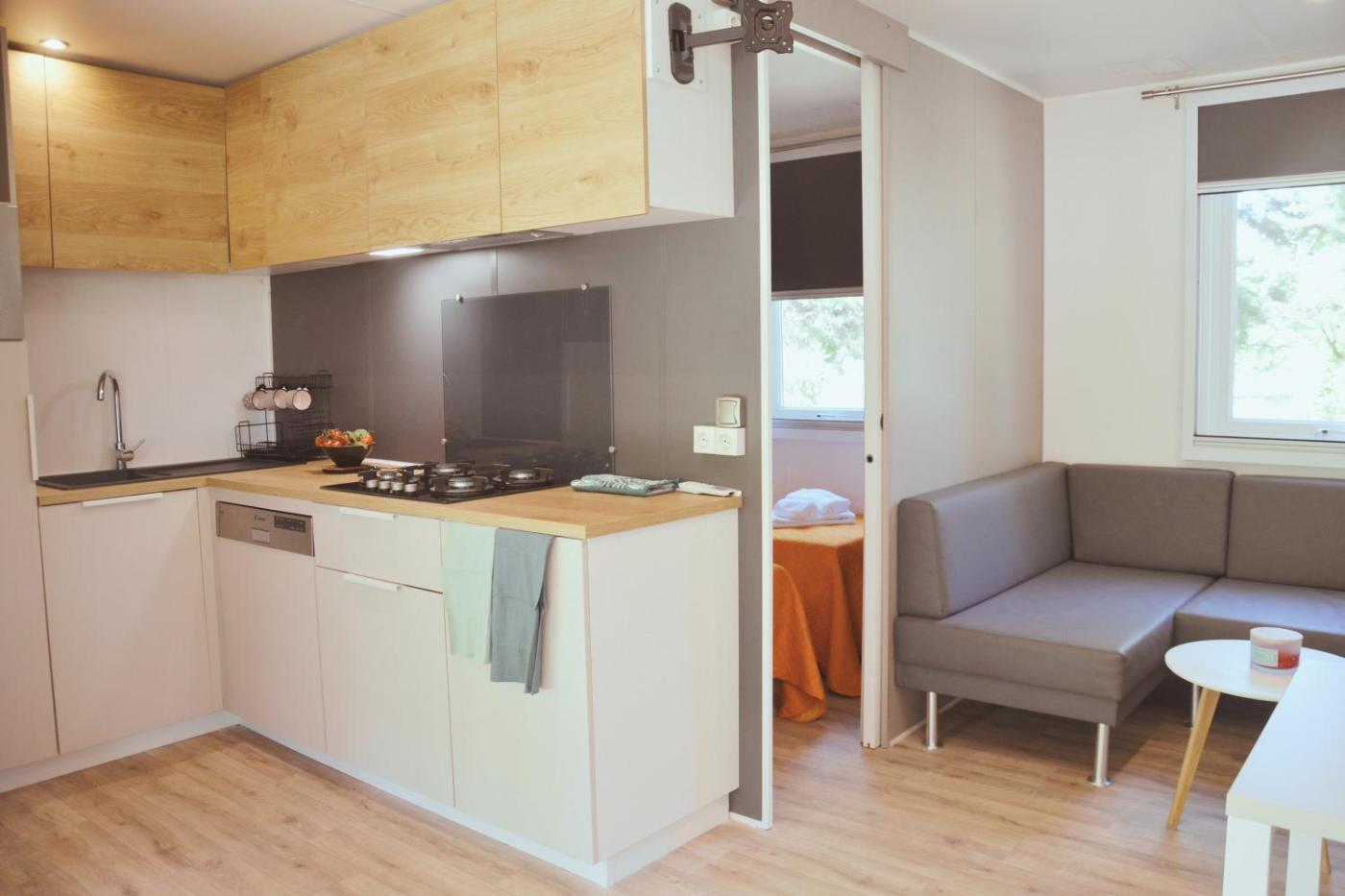 Mobile Home. Featuring a private entrance, this air-conditioned mobile home consists of 1 living room, 2 separate bedrooms and 1 bathroom with a shower. Guests can make meals in the fully equipped kitchenette that features a stovetop, a refrigerator and kitchenware. Among the room amenities are a seating area, a dining area, a wardrobe as well as a patio and garden views. The unit offers 4 beds.