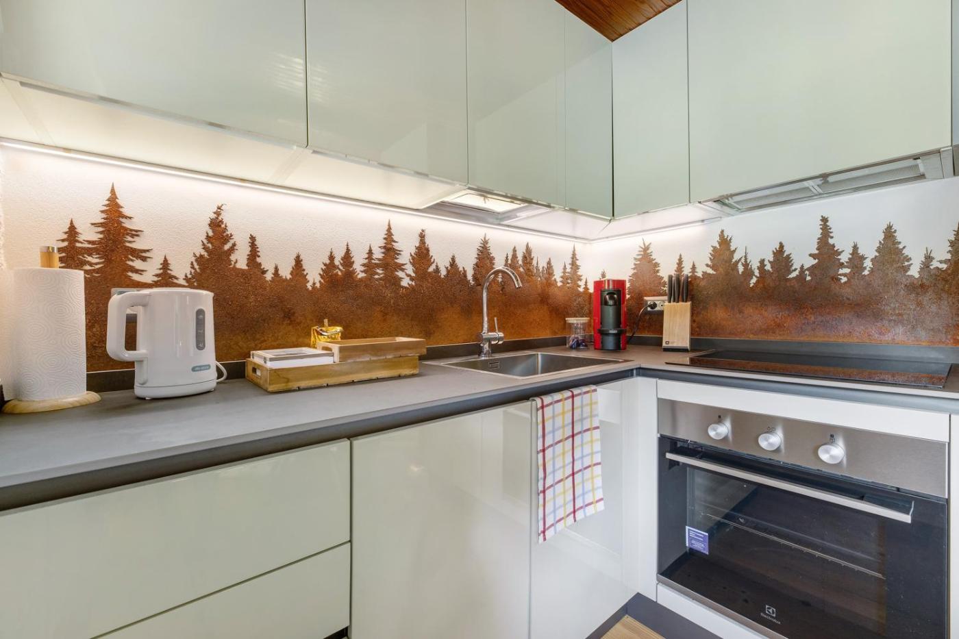 Two-Bedroom Chalet. This chalet comprises 2 bedrooms, kitchen, a terrace and 1 bathroom with a shower. Guests will find a dishwasher, kitchenware, an oven and a toaster in the well-equipped kitchen. The chalet also provides guests with a barbecue. Among the room amenities are a washing machine, a private entrance, a coffee machine as well as a patio and garden views. The unit offers 3 beds.